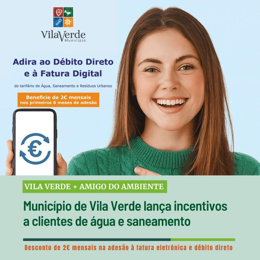 ℹ️ Para mais informações ou aderir, contacte o atendimento do Município de Vila Verde ou consulte https://www.cm-vilaverde.pt/municipio-de-vila-verde-lanca-incentivos-a-clientes-de-agua-e-saneamento-para-adesao-a-fatura-eletronica-e-debito-direto/.